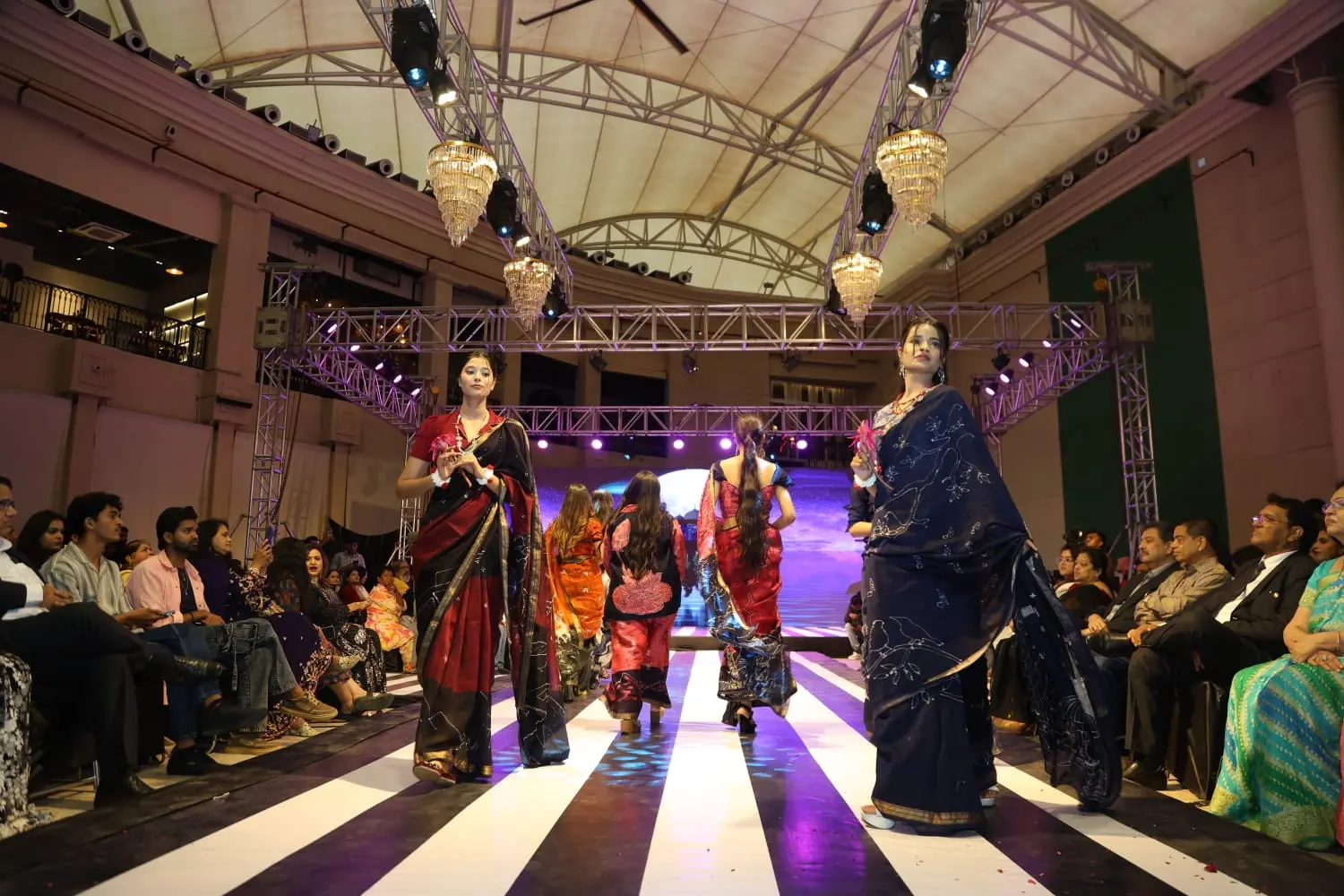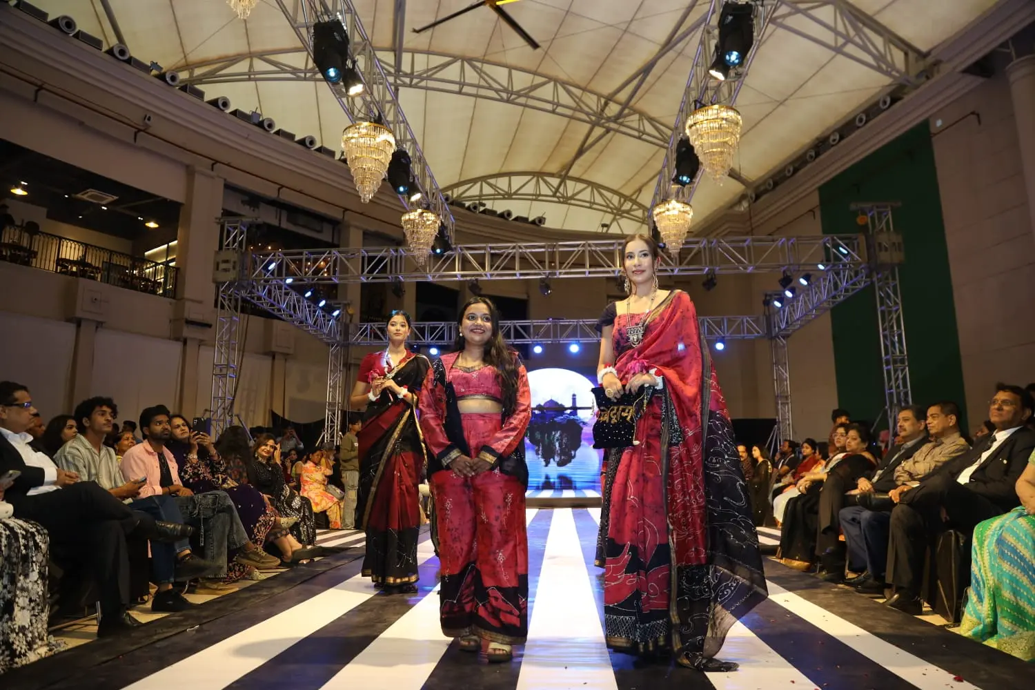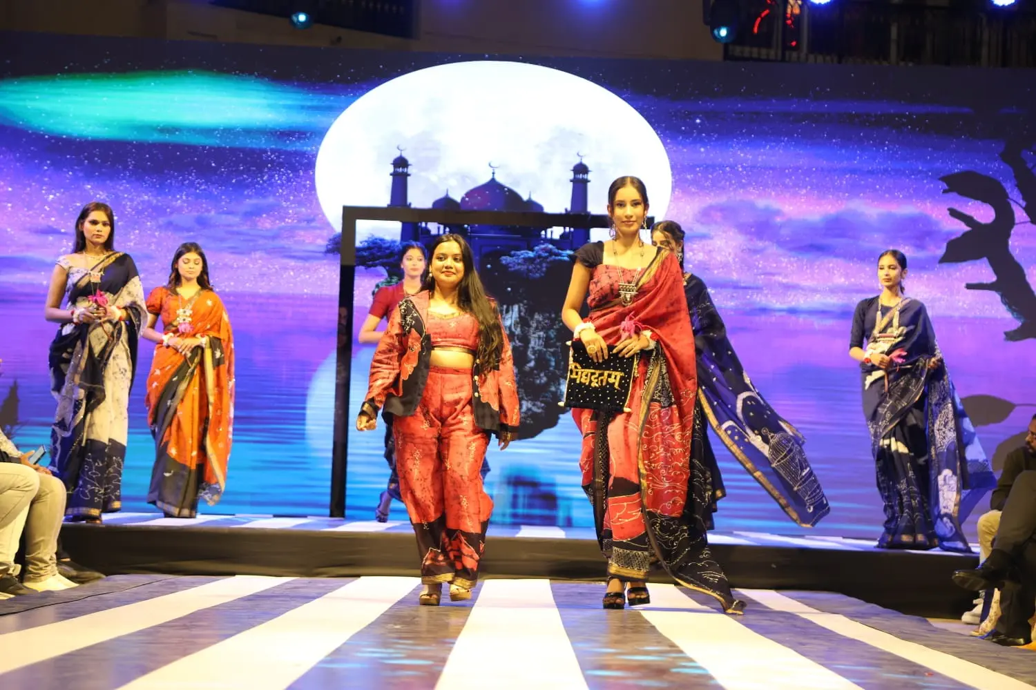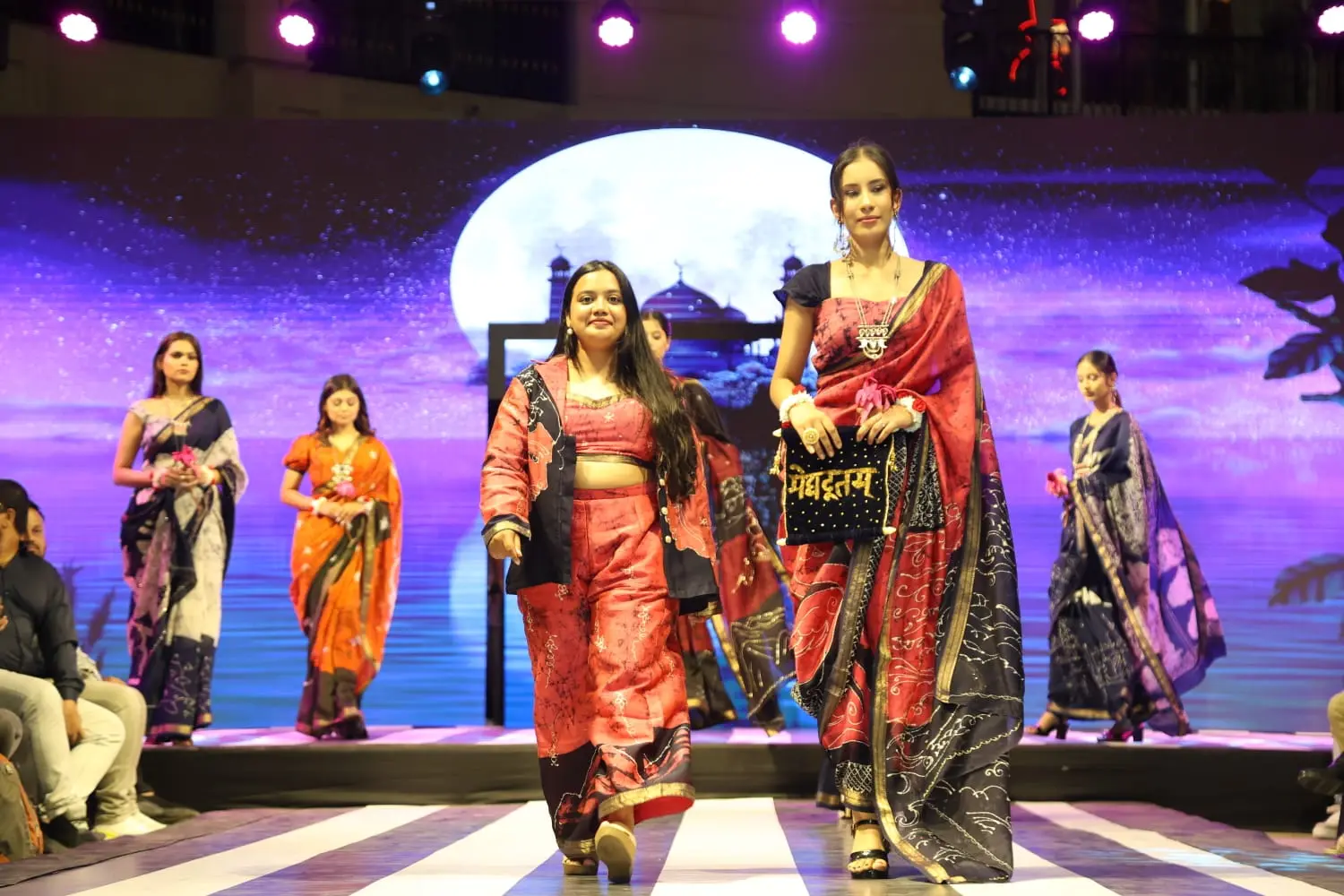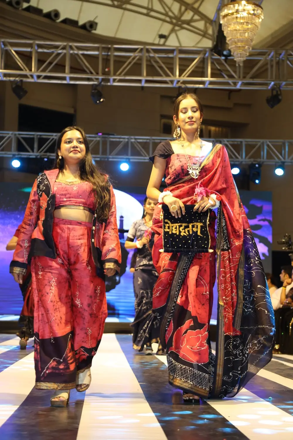 Every saree in Meghdootam is designed to narrate a story—from the flow of its fabric to the intricate details of its embellishments, each element evokes the lyricism and emotion of classical poetry. On the runway, the collection was experienced as more than fashion: it was a living homage to Indian craft and storytelling, where every movement and fold brought the narrative to life.